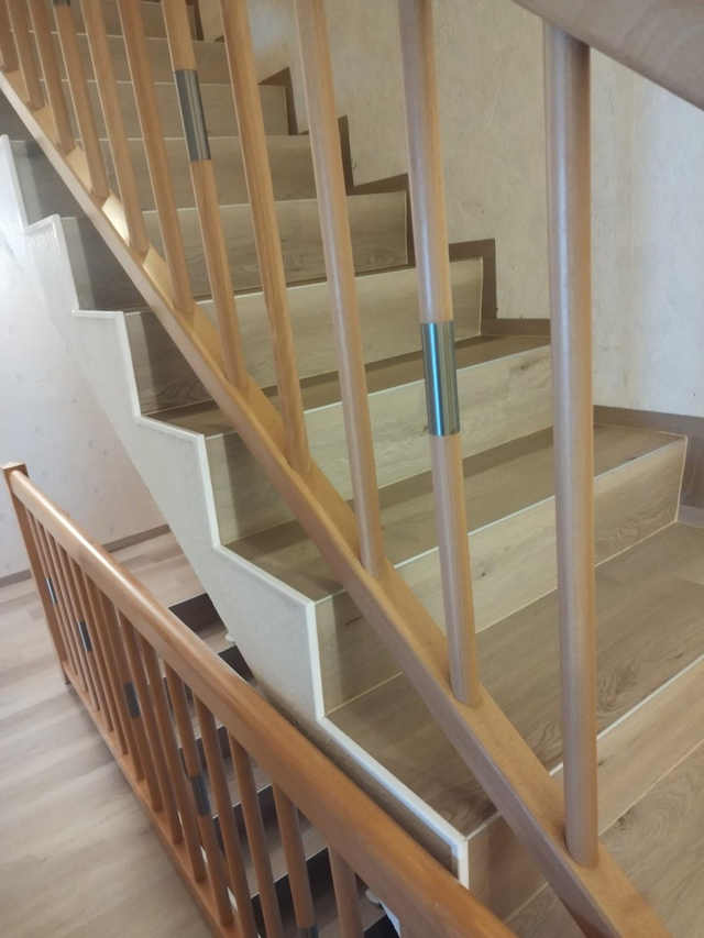 • Wir bieten Ihnen eine große Auswahl an hochwertigen Materialien, darunter edles Parkett, stilvolle Teppich- oder Vinylböden, um Ihre Treppe nach Ihren Wünschen zu gestalten.
