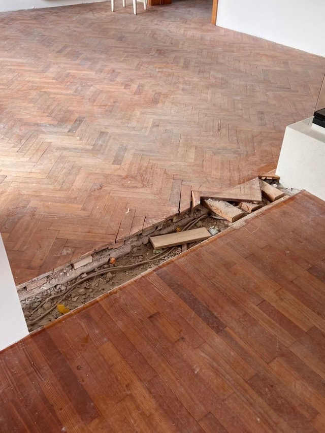 Fachgerechte Sanierung eines schadhaften Mosaik Parkettbodens
