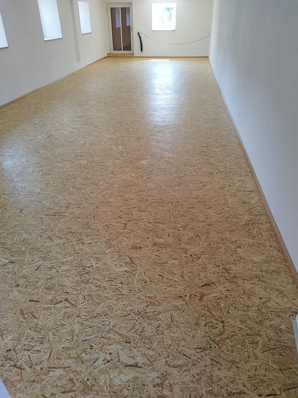 Umbau einer alten Stallung zu Büroräumen Verlegung eines OSB Bodens inkl. Dampfbremse mit anschließenden schleifen und lackieren der Oberfläche